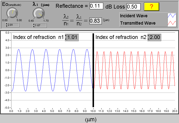 This is a simulation that you can download and run on your Windows computer. You are looking at a simulation of how a wave changes as it passes from one medium to another. An example of this is when light passes from air to glass.